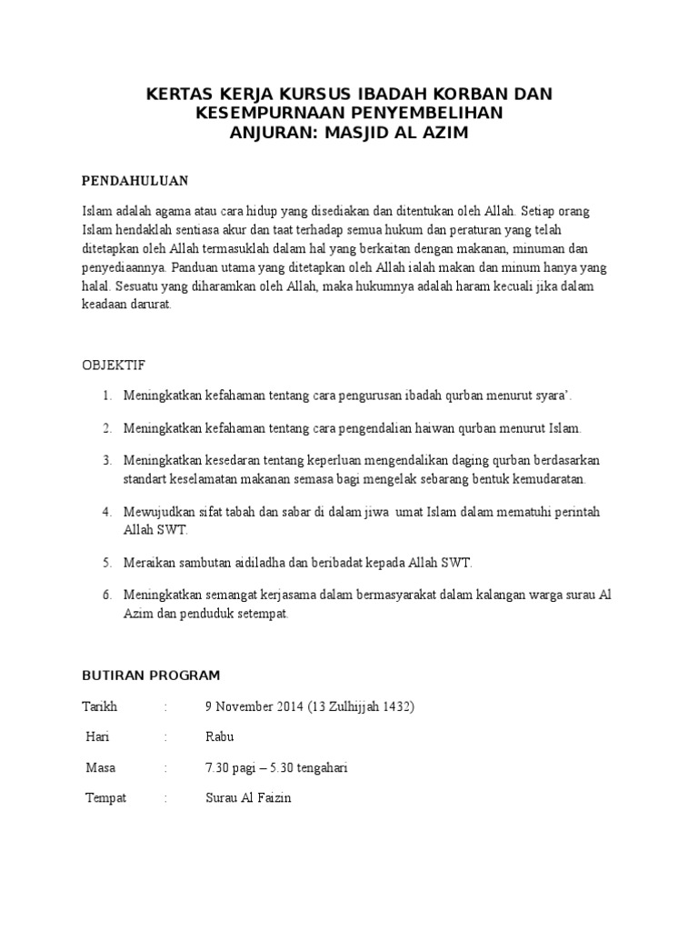 Kertas Kerja Kursus Ibadah Korban Dan Kesempurnaan Penyembelihan Pdf